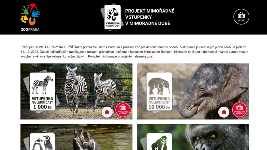Projekt "Vstupenky na lepší časy", online prodej jednorázových sponzorských vstupenek včetně dárkových poukázek.